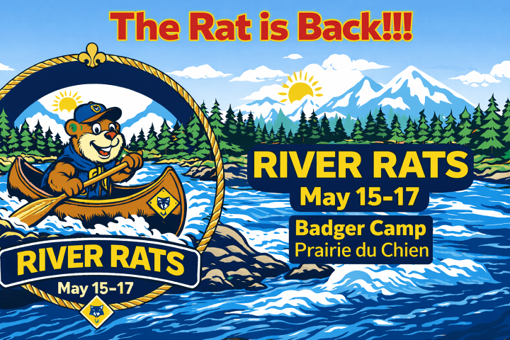 After a 20-year absence, RIVER RATS is back! May 15-17 at Badger Camp South of Prairie du Chien! River Rats is a family camp opportunity where Cubs will develop great fellowship with members of their pack and most importantly have FUN!